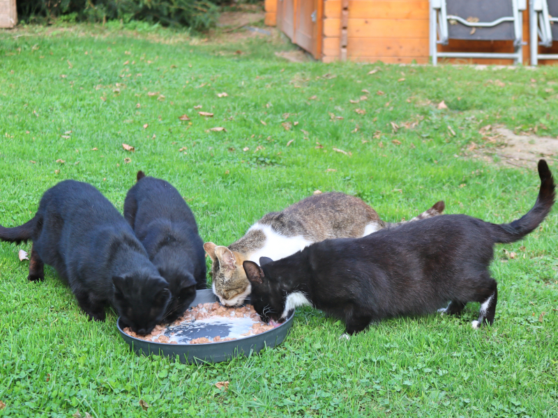 Glücklicherweise verlief die Genesung aller „Patienten“ komplikationslos und endlich konnten wir die Miezen in die Freiheit entlassen. Nun können sie ihrer Wege gehen oder auch bei uns bleiben. Wir haben nun eine weitere Futterstelle auf dem Grundstück eingerichtet, damit für alle ausreichend Nahrung zur Verfügung steht. Doch bekanntlich machen ja Katzen gern ihr „eigenes Ding“…