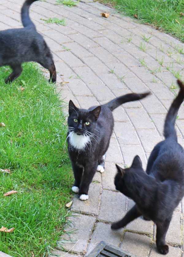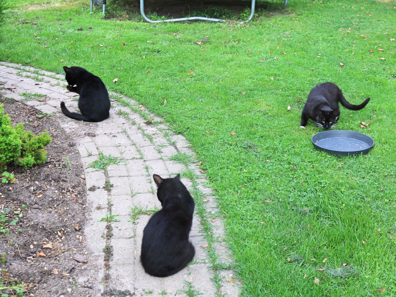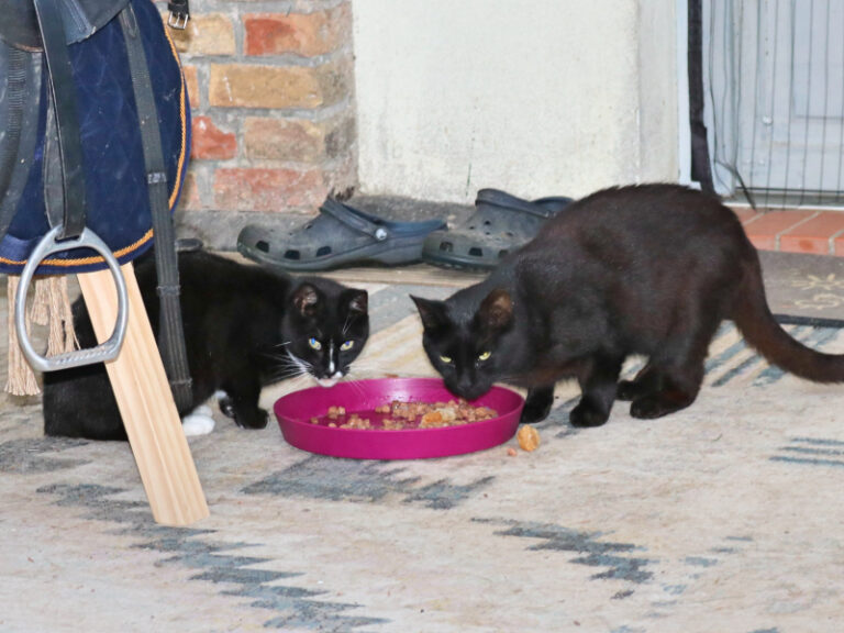 Glücklicherweise verlief die Genesung aller „Patienten“ komplikationslos und endlich konnten wir die Miezen in die Freiheit entlassen. Nun können sie ihrer Wege gehen oder auch bei uns bleiben. Wir haben nun eine weitere Futterstelle auf dem Grundstück eingerichtet, damit für alle ausreichend Nahrung zur Verfügung steht. Doch bekanntlich machen ja Katzen gern ihr „eigenes Ding“…