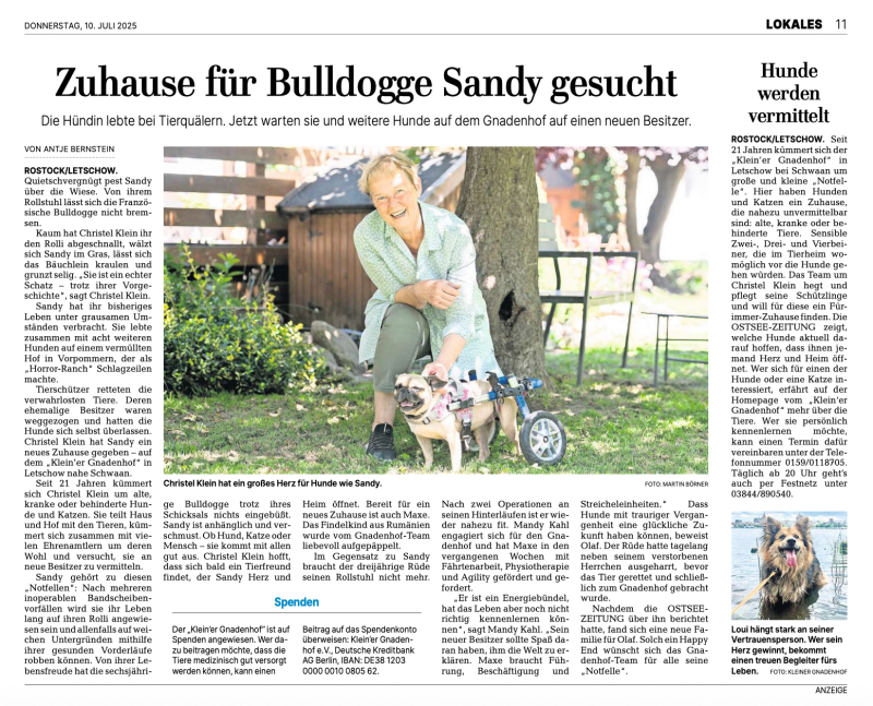 Am 30. Juni 2025 durften wir das Team der Ostsee-Zeitung bei uns auf dem Gnadenhof empfangen.