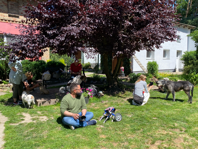 Unsere Fellnasen waren trotz der Hitze sehr aufgeregt und wuselten die ganze Zeit um uns herum. Die Spürnasen nutzten natürlich jede Gelegenheit, um die Besucher zu umgarnen und zu einer Schmuse-Einheit zu „überreden“. Wer kann da schon widerstehen…