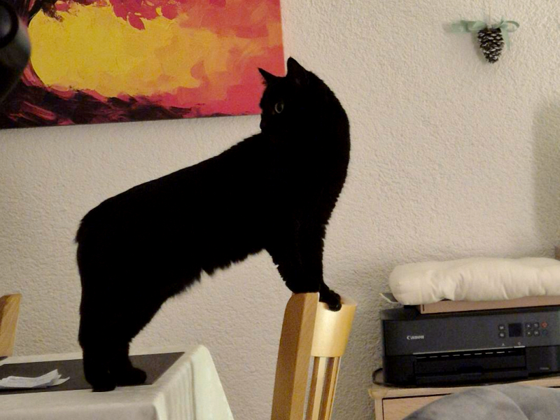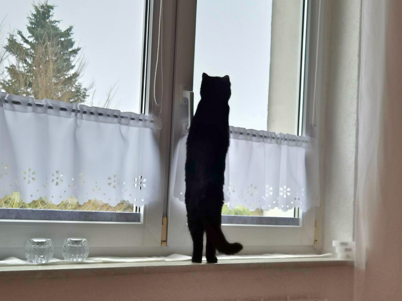 Wenn Kinder bei uns zu Besuch sind schläft Bea gern mit ihnen in den Betten und fordert viele Streicheleinheiten ein, auch wenn es manchmal noch ziemlich früh ist. Dann bekommt sie auch so ein leichtes Hungergefühl und meldet das mit einem leisen Mautzen an. Wenn dann doch noch niemand aufstehen möchte, wartet sie geduldig weiter. Sie ist eben ein ganz liebes ruhiges und genügsames Katzenfräulein.