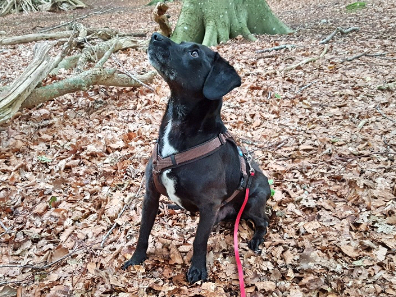 Die Spaziergänge mit ihm sind sehr entspannt, ganz ruhig läuft er mit den anderen Hunden durch den Wald. Bisher konnten wir noch keine großen Unsicherheiten bzw. Angst auslösende Geräusche oder ähnliches feststellen, aber auffällig ist schon, dass er lieber im Haus als im Garten ist. Problemlos bleibt er dann mit den anderen Wauzis im Haus allein und auch sonst ist er für sein Alter ein ziemlich ruhiger Geselle. Allerdings kommt sein Blut in Wallung, wenn er eine unserer Katzen entdeckt. Da möchte er dann schon einmal hinterherrennen, reagiert aber auf ein „ernstes Wörtchen“. Na ja, man kann sich ja mal ausprobieren….