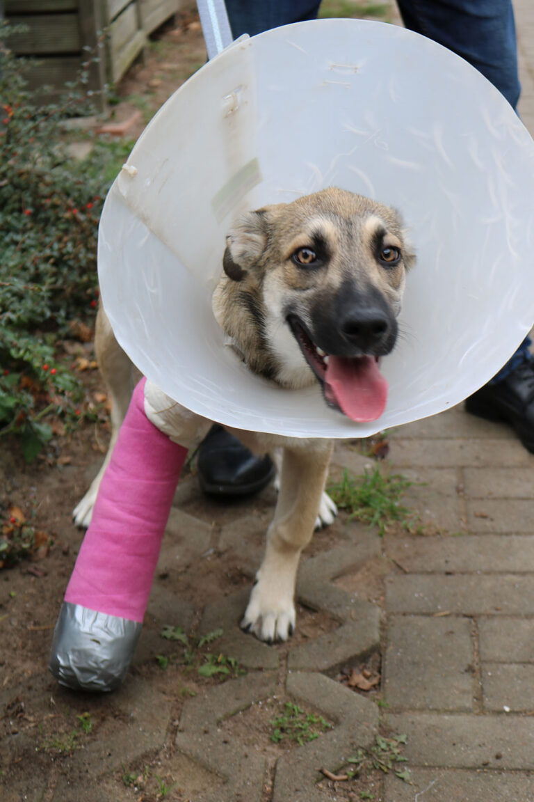 Glücklicherweise hatten wir schon liebe Menschen gefunden, die dem Süßen ein Zuhause geben wollten. So konnte er sich bei ihnen in Ruhe von der ersten OP erholen. Die zweite OP (für den rechten Vorderlauf) wartete einige Monate später auf ihn. Diese wurde ebenfalls erfolgreich in der Dresdner Klinik durchgeführt.