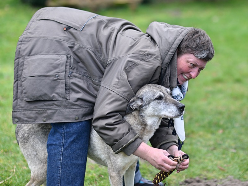 Viele Jahre verbrachte diese super anhängliche und ruhige Dame im Tierheim. Das Leben dort war sehr hart für sie, ist sie doch so sehr auf Menschern fixiert. Egal ob bekannt oder unbekannt, gleich nimmt sie jeden in Beschlag und „klettet“ sich an ihn um beschmust zu werden. Man kann wirklich schon sagen, dass sie an jedem „klebt“, denn oft ist kaum ein Schritt ohne sie möglich. Schön ist, dass sie dabei aber auch die Nähe anderer Hunde zulässt, wobei sie mit allen sehr gut verträglich ist. Auch mit den vielen Katzen bei uns hat sie keine Probleme.