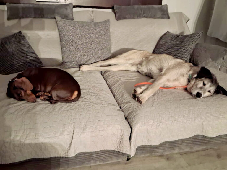 Die Geschichte von Lasko ist kurz. Als Welpe angeschafft und gehofft, dass er schon weiß, wie er sich zu „benehmen“ hat. Leider wusste das der ungestüme Hund nicht und tötete ein Huhn. Daraufhin wurde er ins Tierheim abgeschoben, wo er nun schon seit sechs Jahren auf seine Menschen gewartet hat. Über die Jahre hinweg entwickelte der so sehr menschenbezogene Hund einen Zwingertick, indem er sich an die Gitterstäbe klammerte und sich im Kreis drehte. Aus dem jungen Tier ist ein grauer verzweifelter Hund geworden, hilflos und traurig.