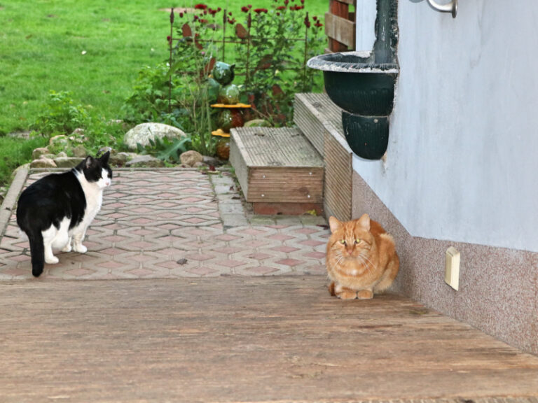 Glücklicherweise verlief die Genesung aller „Patienten“ komplikationslos und endlich konnten wir die Miezen in die Freiheit entlassen. Nun können sie ihrer Wege gehen oder auch bei uns bleiben. Wir haben nun eine weitere Futterstelle auf dem Grundstück eingerichtet, damit für alle ausreichend Nahrung zur Verfügung steht. Doch bekanntlich machen ja Katzen gern ihr „eigenes Ding“…