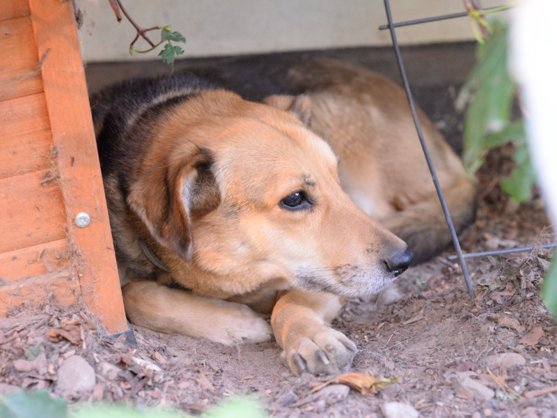 Melly ist eine kleine Buddelmaus, wobei klein sehr untertrieben ist. Sie buddelt so tief, dass sie nicht mehr zu sehen ist, wenn sie in ihrer Kuhle liegt. Schon einige der „Krater“ mussten wir wieder mit Erde auffüllen und so manche Pflanze hat das Ganze nicht überlebt. Doch die Kleine ist mit ihrem jetzigen Leben voll zufrieden. Melly genießt das schöne Wetter und freut sich riesig über das Futter, was braucht ein Hund sonst mehr?