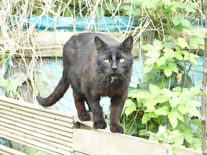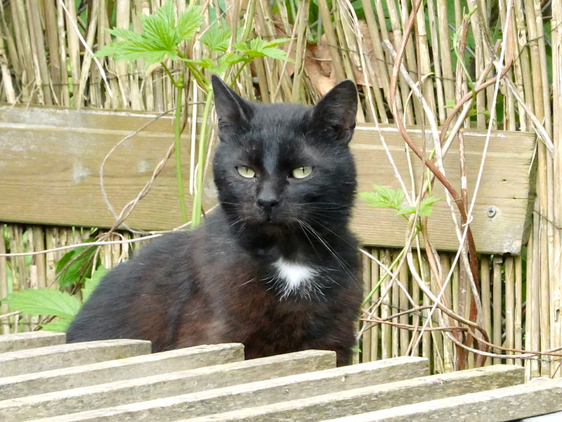 Sofern fremde Menschen den Garten betreten ist er, genau wie alle anderen scheuen Katzen, sofort verschwunden und daher kaum vermittelbar.