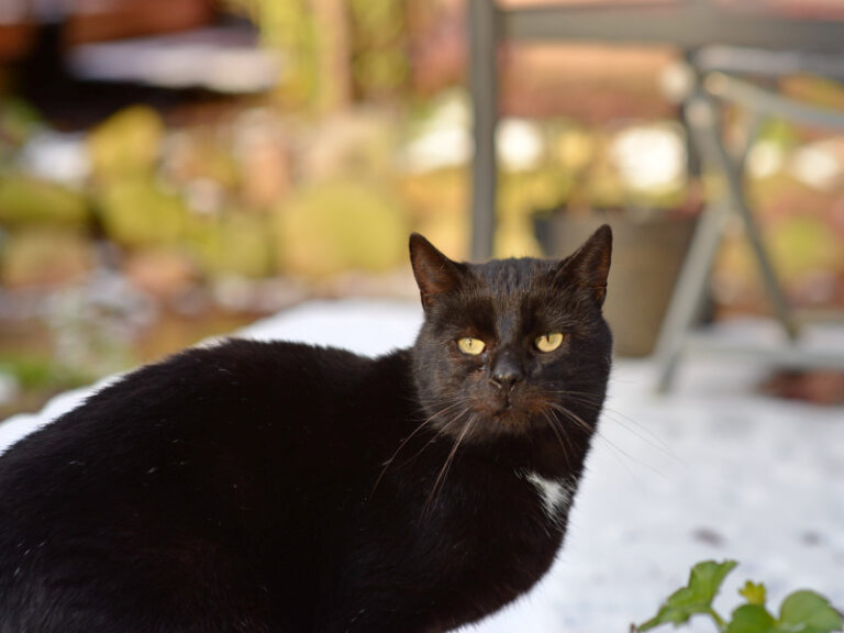 Lange war das Katerchen dann nicht mehr für uns sichtbar. Doch plötzlich bemerkten wir ihn immer öfter in unserem Holzlager, wo er es sich gemütlich gemacht hatte. Auch an einer unserer Futterstellen konnten wir ihn beobachten. Immer entspannter wurde er, wenn wir uns im Garten aufhielten und mittlerweile ist er ein ständiger Gast und kommt aufgeregt angelaufen, wenn die großen Futterteller herbei „schweben“.