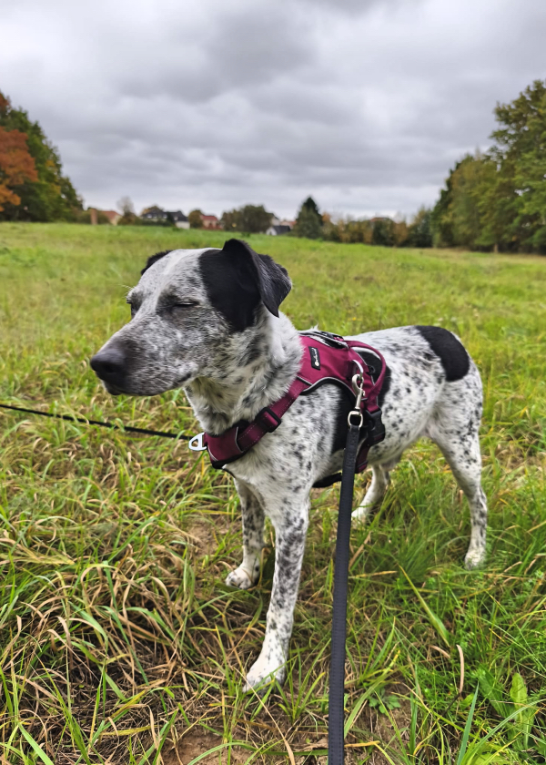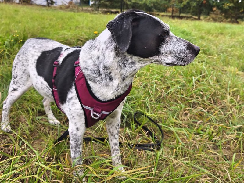 Das Frauchen kann ihm leider auf Grund ihres Alters nicht gerecht werden und fühlt sich überfordert. Felix ist ein ganz lieber, sensibler Rüde, mittelgroß und soll ein Mix aus Dalmatiner/Beagle sein. Er liebt Spaziergänge und von der Kondition noch richtig fit.