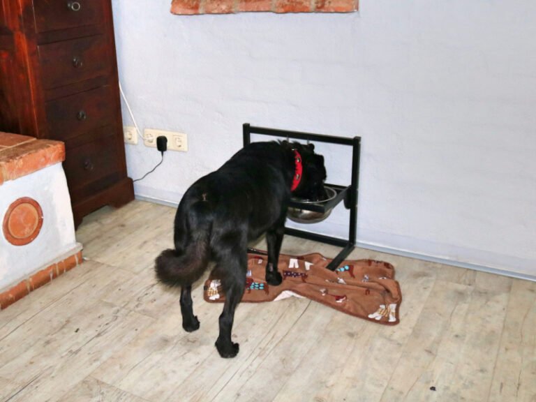 Leider müssen wir die zusätzlichen „Portionen“ in Grenzen halten, da das kleine Hündchen leider auch ziemlich rund ist und ein paar Kilos weniger würden ihm bestimmt gut tun. Und außerdem benötigt er den „Kummerspeck“ ja nicht mehr.
