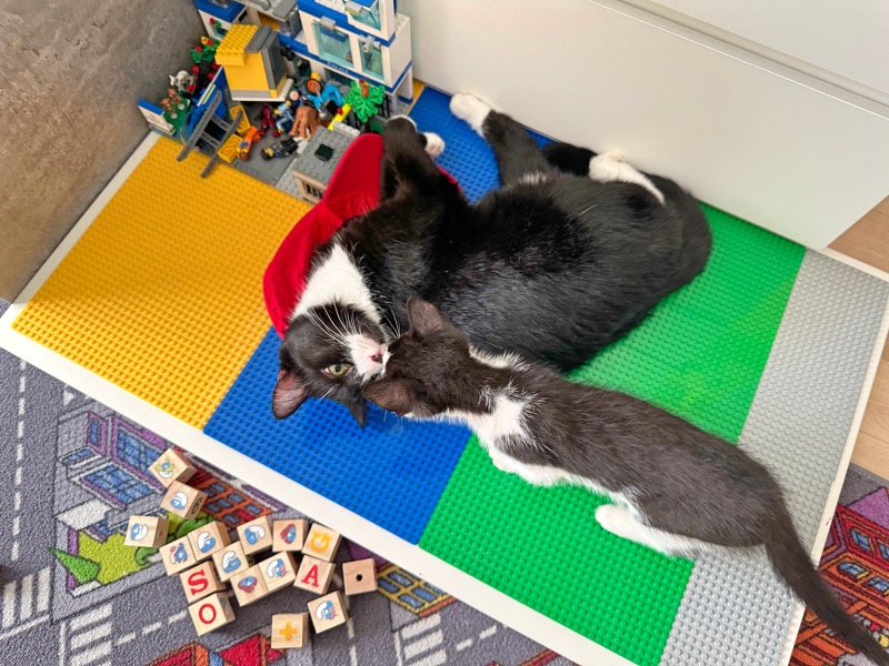 Es geht ihm sehr gut. Im Dezember ’23 wurde er kastriert und hat alles gut überstanden. Leider musste Fritzi sich schon von unserer „Trixie“ (schwarz -weiß) verabschieden. 🙁 Das hatte ihn doch sehr mitgenommen, weil da jemand zum spielen und zum Kräfte messen fehlte und unsere „Bella“ (getigert) nicht so die Tobe-Katz ist.