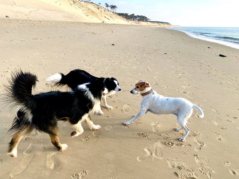 Meine Menschen haben mich aber nicht spüren lassen, dass irgendwas nicht stimmt. Das neue Futter ist zwar kein Gourmetbissen, aber damit fühle ich mich jetzt viel besser und das beste daran: meine Nierenwerte sind wieder in den Normalbereich geklettert. Ich springe morgens wieder aus dem Bett und kann es nicht erwarten mit meinen Menschen einen Ausflug zu machen. Am liebsten fahre ich an den Strand, denn da kann ich stundenlang schnüffeln und habe freie Bahn, um mal so richtig zu rennen. Und wie ihr sehen könnt, habe ich viele Freunde zum Toben und Chillen gefunden.