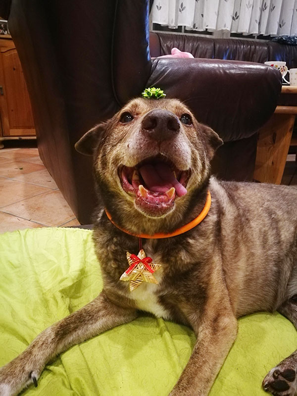Er ist ein krummer aber sehr fröhlicher Hundeopa, mit dem wir alle gerne kuscheln.