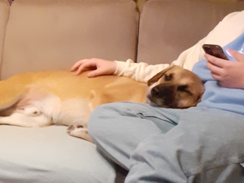 Eddy ist „angekommen“, trotz seiner knapp 3 Jahre ist er aber eher auf dem Stand eines Welpen, ist es doch zu merken, dass er bisher noch nicht soviel kannte. Er ist wild, verspielt, tollpatschig, seine Konzentration ist von kurzer Dauer, genauso ist er aber auch geduldig mit Szaki, ein Familienhund, zutraulich, kuschelig….😍 und er weiß das im Haus „Ruhe“ ist.