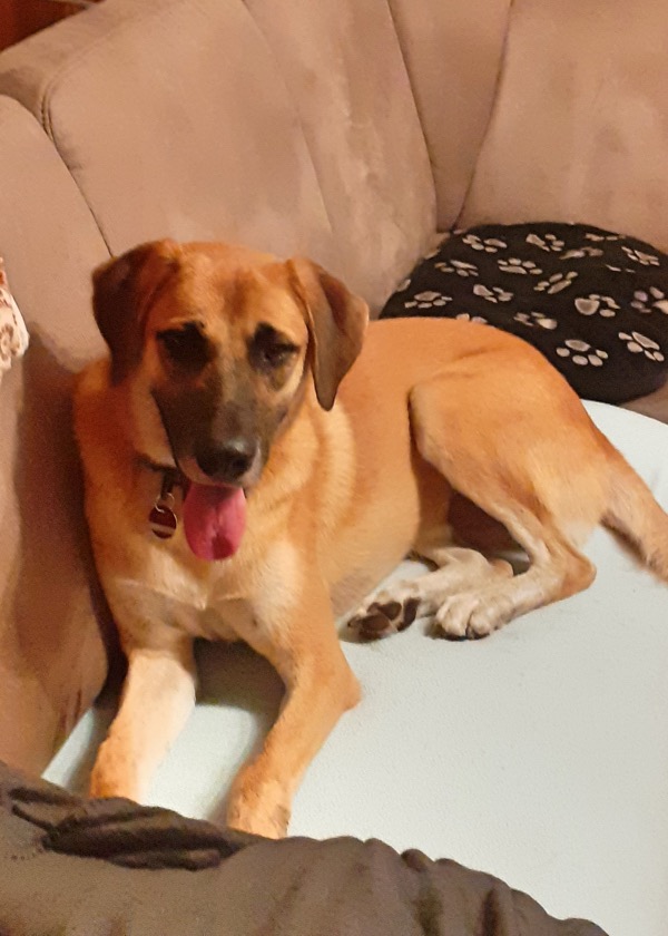 Seit einer Woche läuft er „ohne Leine“, eine dünne Schleppleine zur Sicherheit hat er noch dran und zieht diese hinter sich her. Das klappt schon ganz gut, er hört, dreht sich um, wartet auf uns. Anfangs hat er jeden Hund + Menschen im Dorf lautstark begrüßt an denen wir vorbei mussten, jetzt ist er schon deutlich ruhiger und enspannter. Die Kommandos „Warte“ , „Vorsicht“, „Aus/ Sch“ beherrscht er auch schon ganz gut. Beim ersten Tierarztbesuch (im Mai) bei uns hat er sich von seiner besten Seite gezeigt, war ruhig und geduldig. Mit Leo (unseren 12 jährigen Schäferhund Labrador Mix) stimmt die Chemie ebenfalls, wo der Eine ist, ist der Andere nicht weit weg. Kuscheleinheiten auf seinem Sofaplatz kommen natürlich auch nicht zu kurz. Szaki ist bei uns angekommen, er hat sein zuhause auf Lebenszeit gefunden und auch wenn wir sicher noch Punkte haben, an denen wir mit Szaki arbeiten werden, möchten wir ihn nie wieder hergeben.