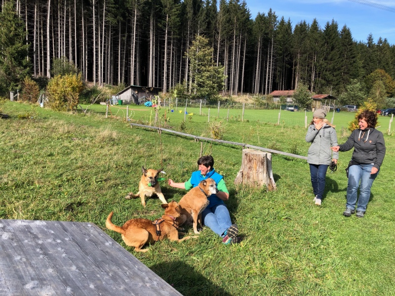 Doch natürlich sollte das nicht alles sein. Am 1. Oktober haben Christel und Inga das Tierheim Riem besucht und Prinz, Monchichi und Kreuzerl den Weg in ein neues Leben geebnet. Denn diese drei Spürnasen durften an diesem Tag aus dem Tierheim ausziehen und sind seitdem die neuen Gnadenhofbewohner. Monchichi ist bereits 17 Jahre alt, Prinz 16 und Kreuzerl 13. Die Fahrt verging wie im Fluge und die drei sind sicher und heil in Letschow gelandet und haben sich bereits ein wenig einleben können.