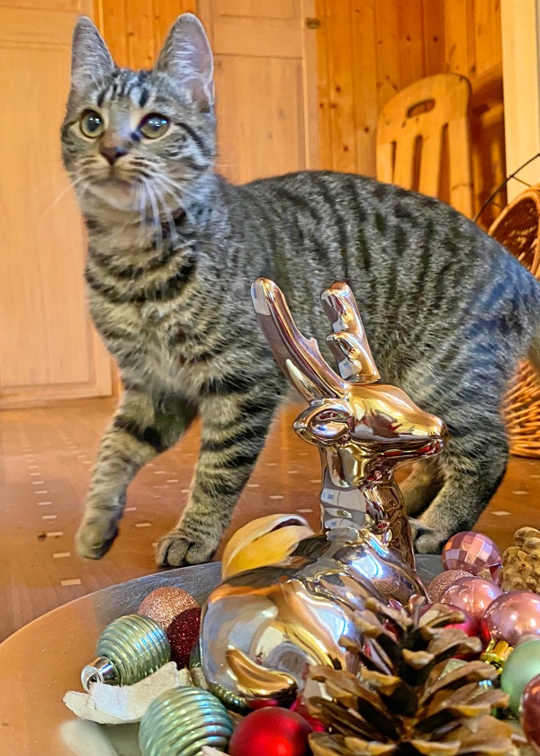 Sera und Ria waren unsere ersten vierbeinigen Models, die sich super geschlagen haben. Zu Beginn haben sich die beiden über die Dekoration „hergemacht“, wobei Ria anschließend versuchte den Weihnachtsstern zu hypnotisieren :-). Immer in meiner Nähe war die kleine Emmi. Sie war mein Schatten, ist sie doch gewohnt, dass ich bei meinen Besuchen ausgiebig mit ihr kuschele. Ihren auffordernden Blick „Ich bin hier und will gestreichelt werden“ musste ich einfach festhalten.