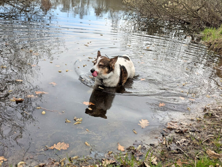 Es ging nach Parkentin, weil es da so viele kleine Teiche gibt, in denen man sich Abkühlung verschaffen kann. Die Schnüffelnase hatte an diesem Tag keine Pause, so viele interessante Gerüche, tolle Wasserstellen und das alles in unbekanntem Terrain. Was für ein Abenteuer! Und dann noch die kleinen Frösche…da hat Yogilein doch ein bisschen Respekt: