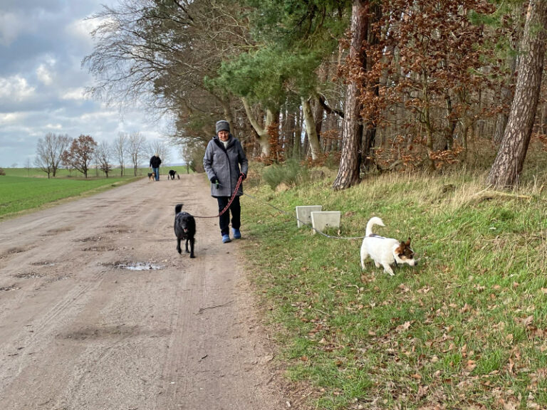 So ging es zu dritt nach Parkentin und von dort aus, wo Yogi sich nochmal im Wasser abkühlen konnte, nach Althof. Die ca. 3 Kilometer lange Wald-Wanderung hat der kleine Rabauke wie immer gut mitgemacht. Es wurde wieder jeder Hügel erklommen und wie immer natürlich verstecken gespielt. Auf Steffis Kommando „Wo ist Robert?“ rast der kleine Sausewind los und schnüffelt so lange bis er Robert auch gefunden hat. Der Stolz nach erfolgreicher Suche steht ihm dann natürlich ganz groß ins Gesicht geschrieben 🙂 .